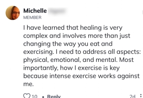 I feel now that I belong to a group that’s going through what it takes to live with a plethora of autoimmune diseases and addressing them head on. The support is amazing! I know this sounds weird but it’s actually fun and I look forward to all the new info.”